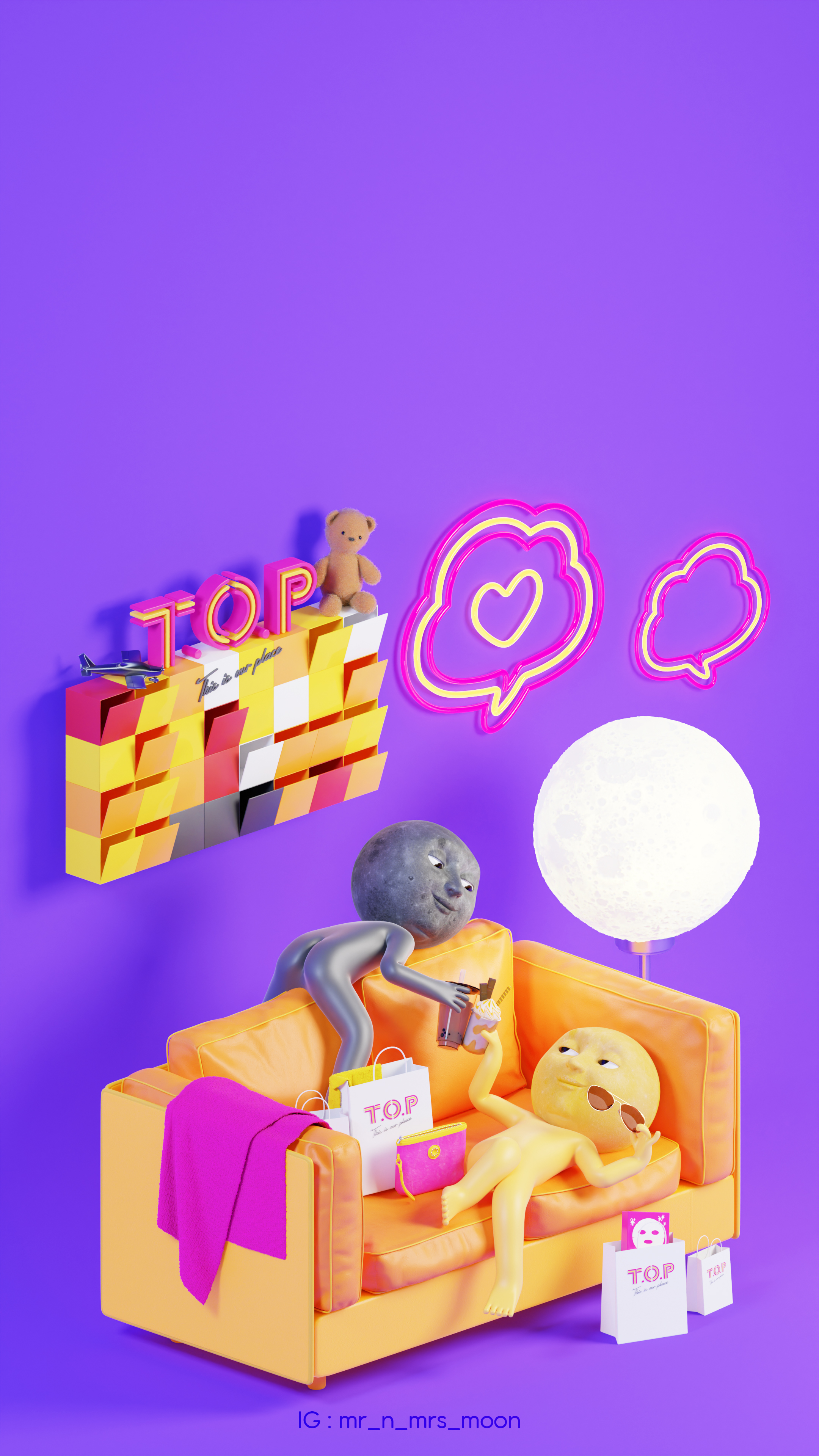 只要追蹤T.O.P This is Our Place Instagram 帳戶及以公開帳戶打卡並標註@topmongkok,即可換領限量Mr n Mrs Moon A3 Sticker乙張,數量有限,送完即止